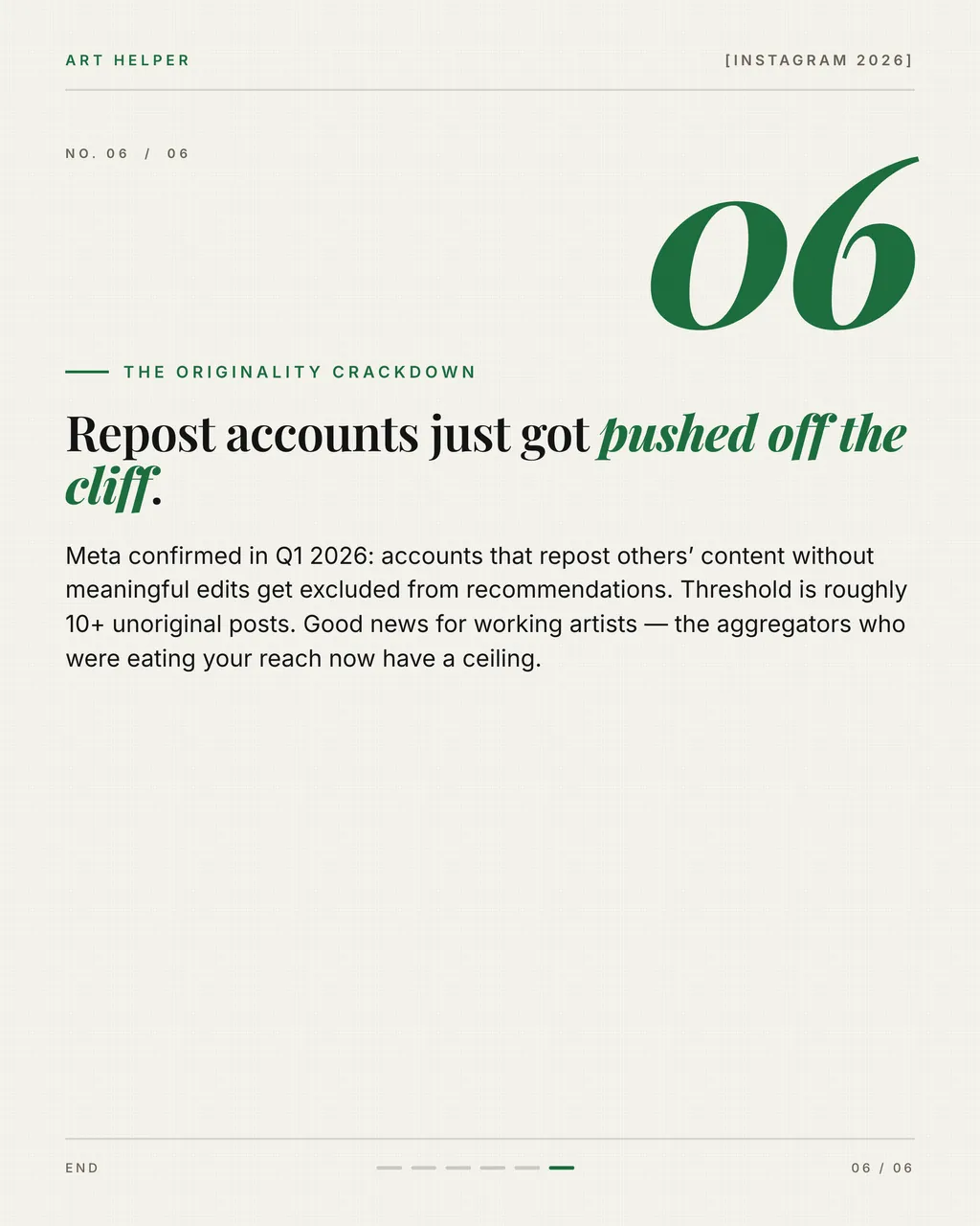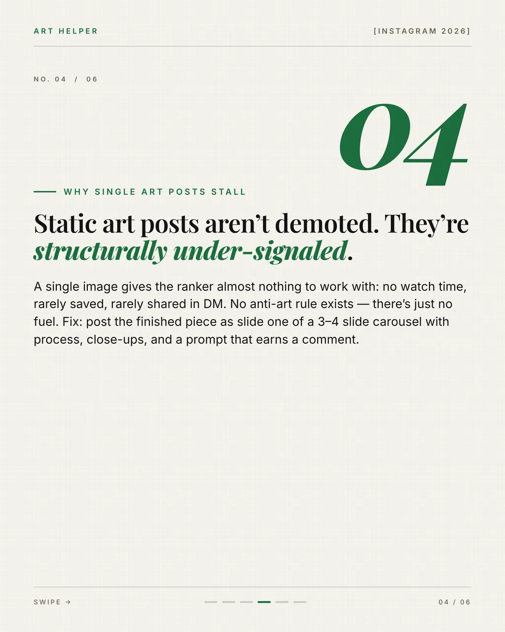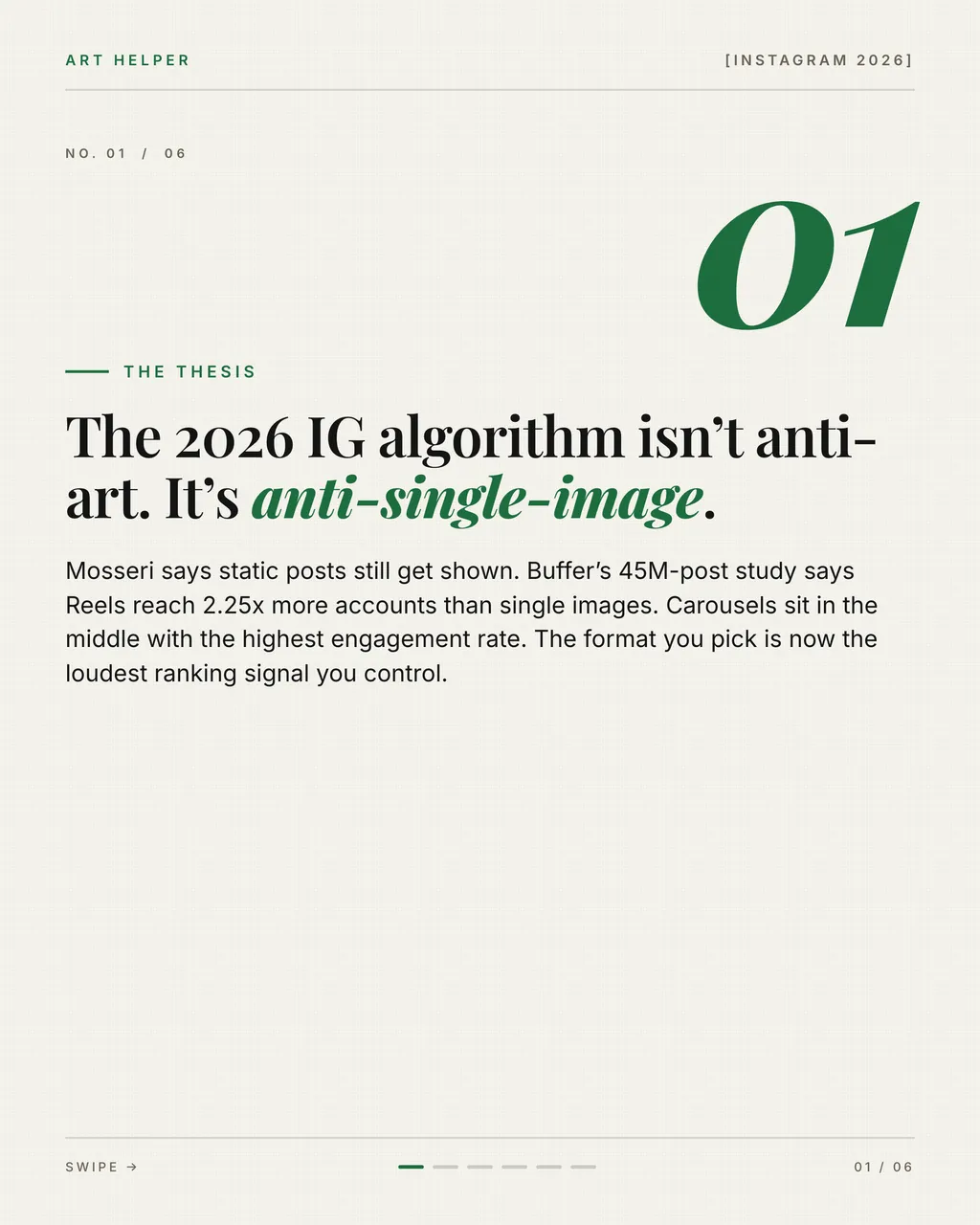 The 2026 IG algorithm isn't anti-art. It's anti-single-image.