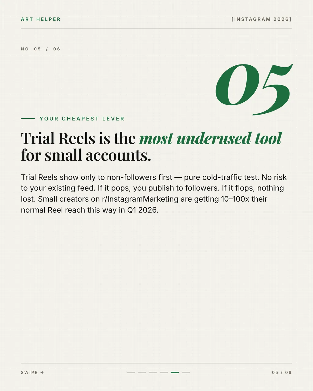 What's working for you right now — Reels, carousels, or something else? And has anyone here run a Trial Reel yet?