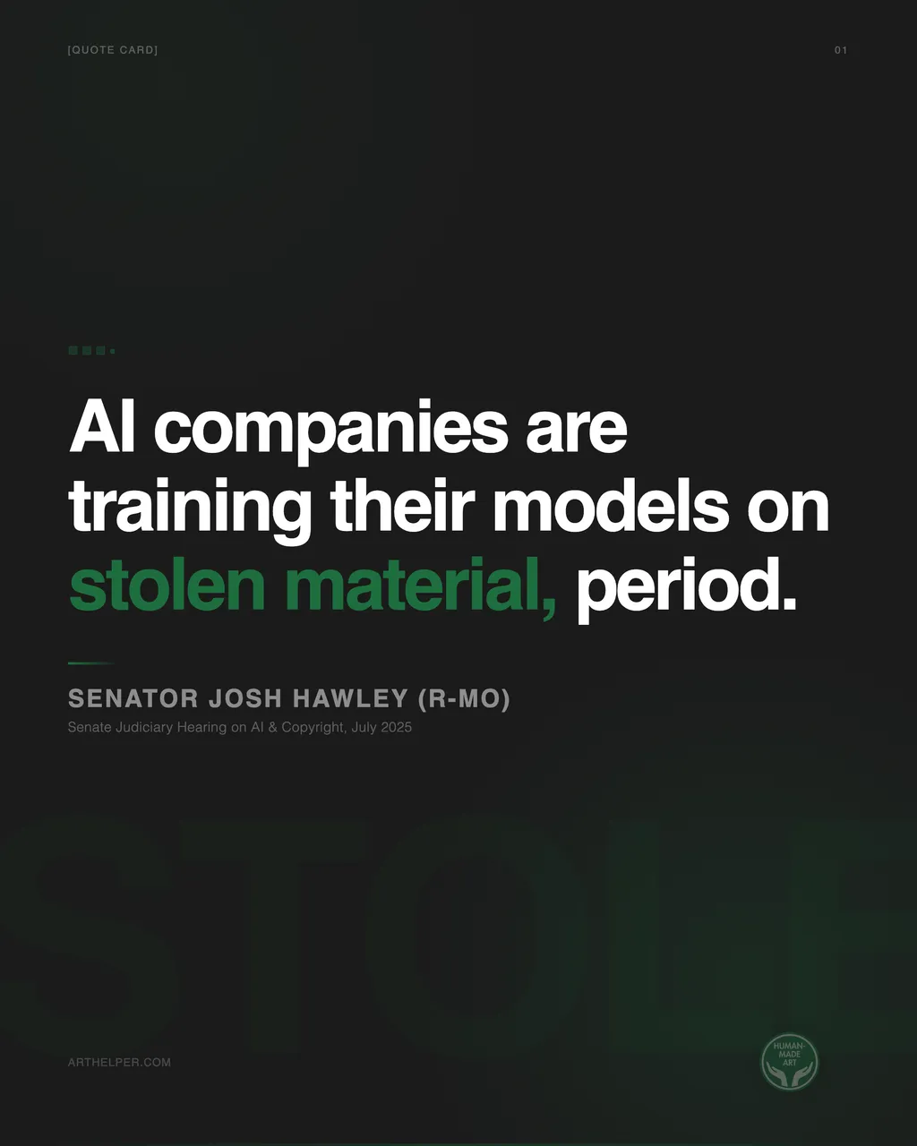 A sitting U.S. Senator said this under oath at a Judiciary hearing on AI and copyright par Patrick Shanahan