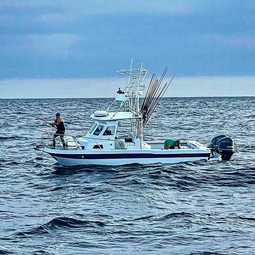 Greg is a SoCal angler who films everything — monster bluefin battles, solo skiff runs at dawn, dramatic ocean weather, and philosophical reflections on life at sea. His content is part fishing, part meditation, part nature documentary. Average 397 likes per post. His viral hit — a Charlie Munger quote reel — pulled 18,080 likes and 334 comments.