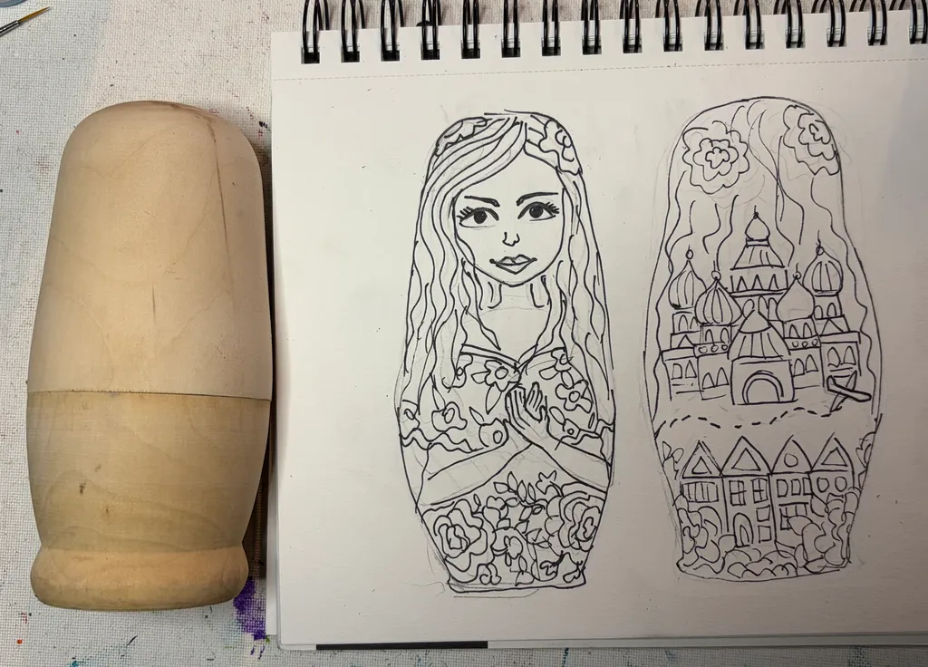 Nous avons échangé sur les images symboliques à inclure – j'ai commencé à élaborer des idées de brouillons pour elle ! Elle m’a trouvée en faisant une recherche Google pour des ensembles de Matryoshkas personnalisés, a aimé mon style, a commencé à me suivre sur IG et lorsque j'ai annoncé ma vente de printemps, elle a passé commande.