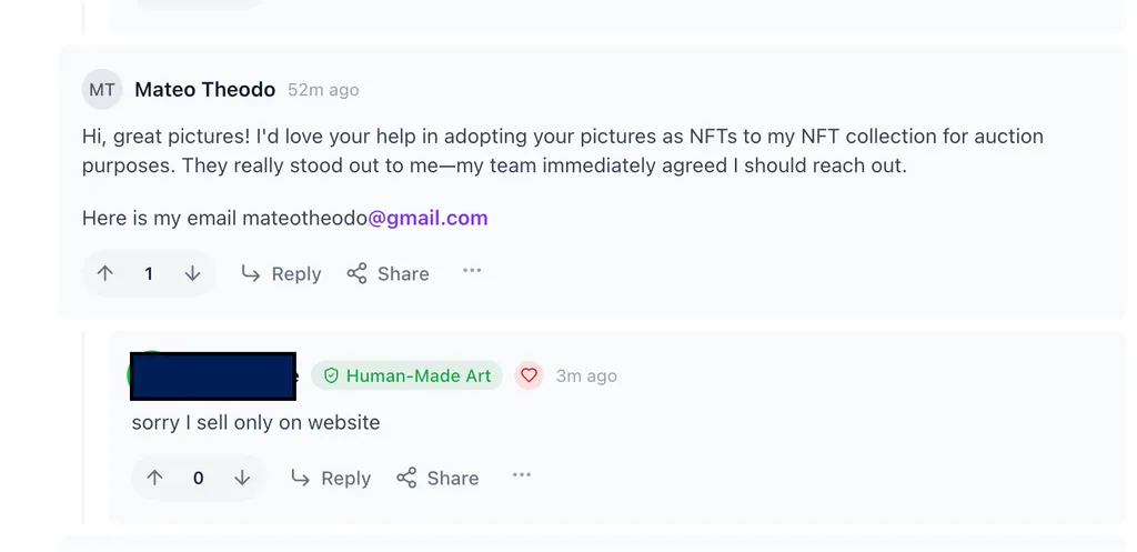 Nos últimos dois dias, recebi um e-mail de golpe pelo ArtHelper, e um pedido falso de colaborações em NFT.