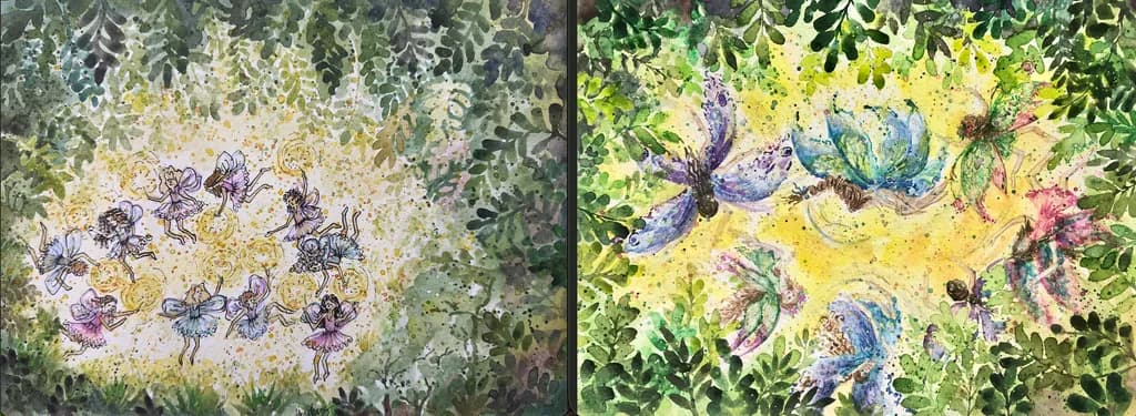This was a commission piece for a salon owner, who had been looking for a while for an artist to execute her vision. I was really excited that she trusted me to create this Harry Potter inspired three panel, large painting. She had many elements that she wanted included, which I was able to do plus a few extras as surprises. It is in her massage room where she works.