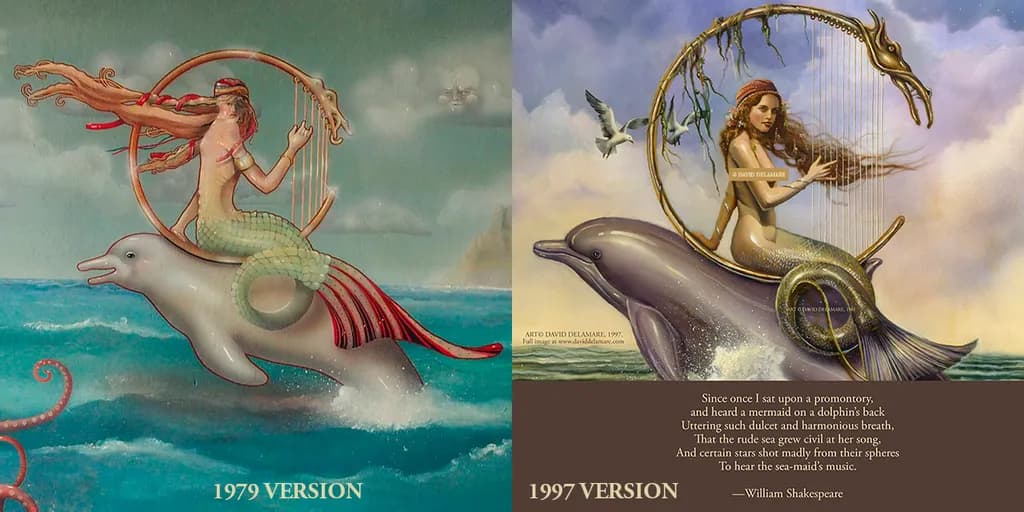 This is a shout-out to beginning fantasy artists to keep honing your craft. I thought it might be fun to show a detail from David Delamare's very first mermaid painting in 1979 and a later version of the same concept in 1997. You can see the final, un-cropped 1997 painting in the mermaid gallery at www.daviddelamare.com.