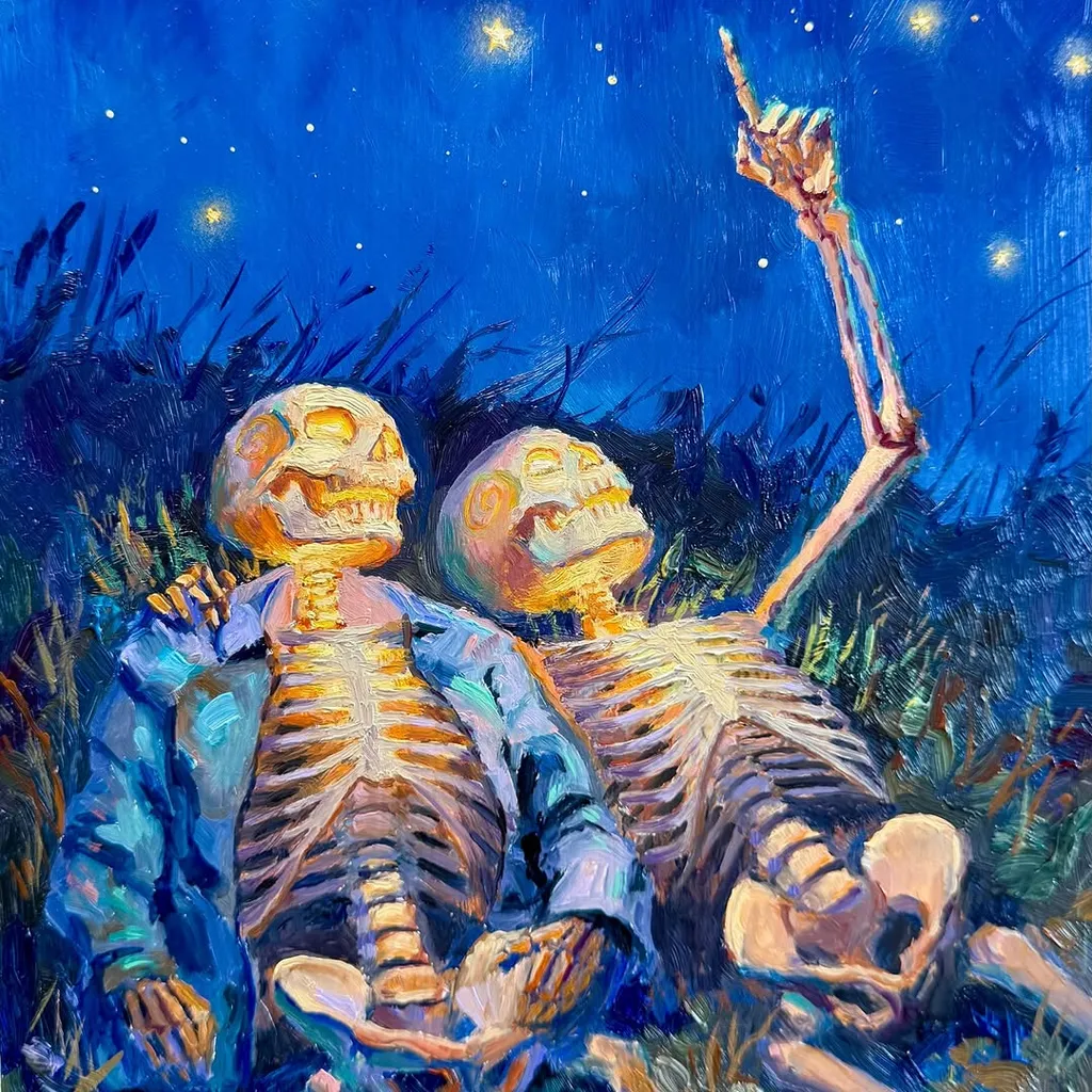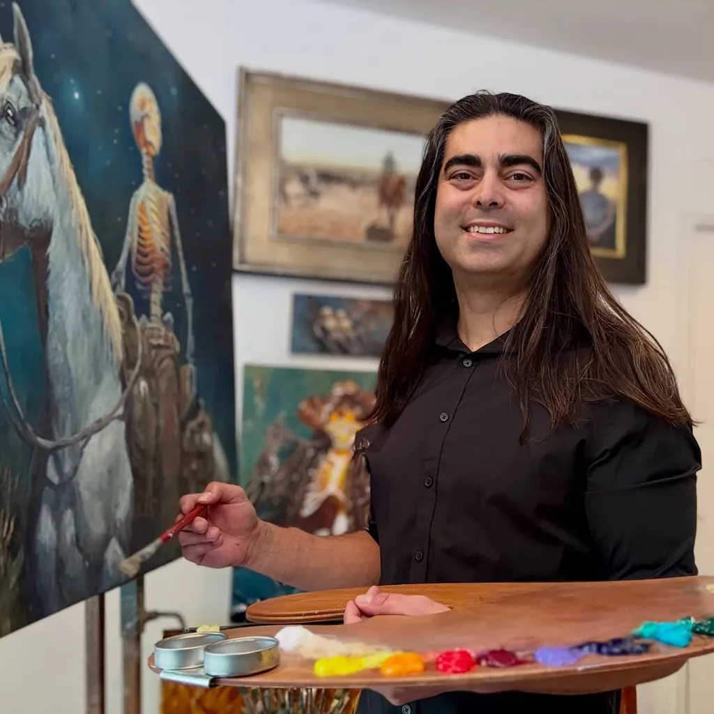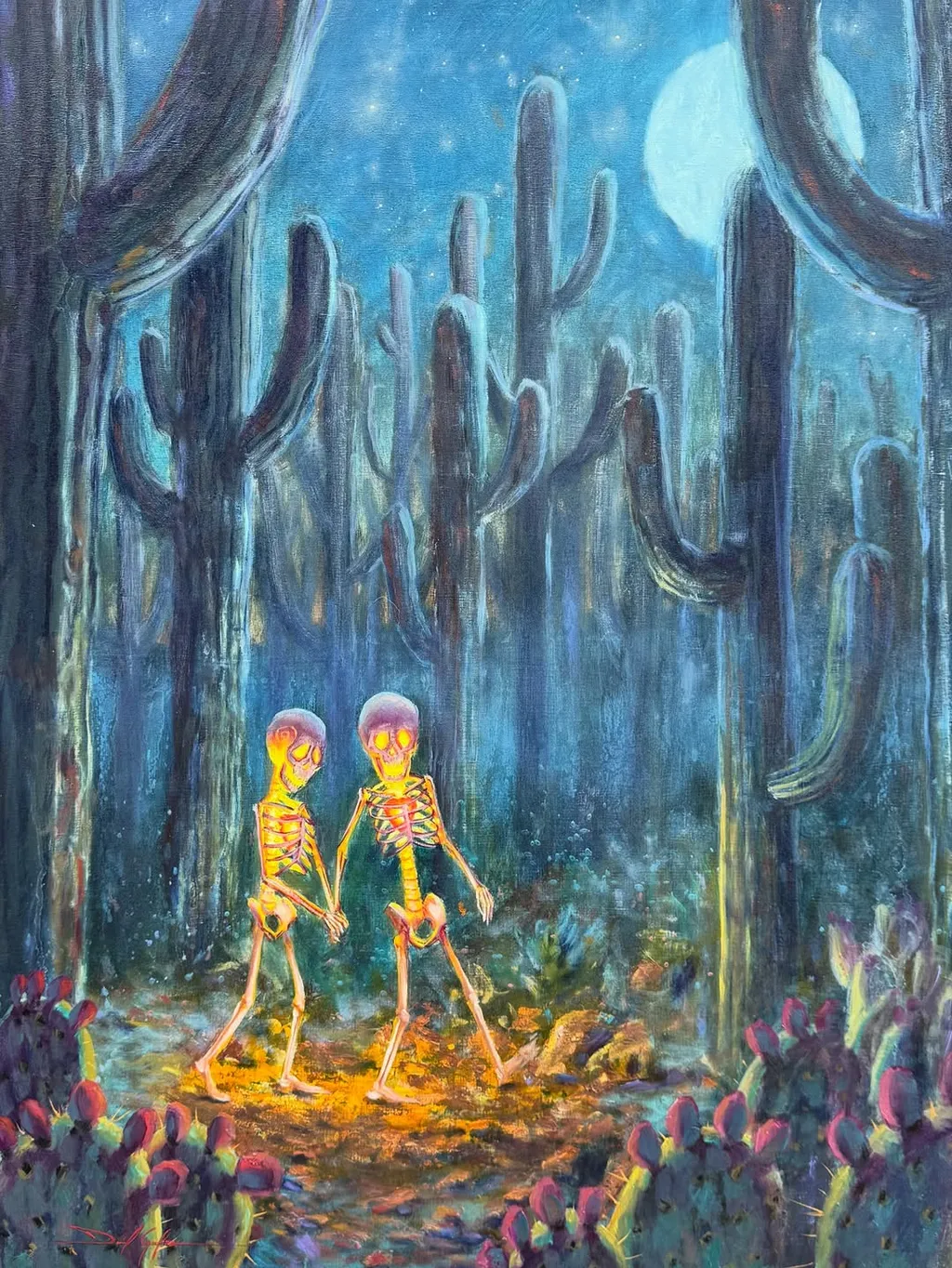 "I paint Calaveras — skeletons full of life, not death. Oil on wood · American Southwest. YouTube tutorials · Originals & prints below 👇"